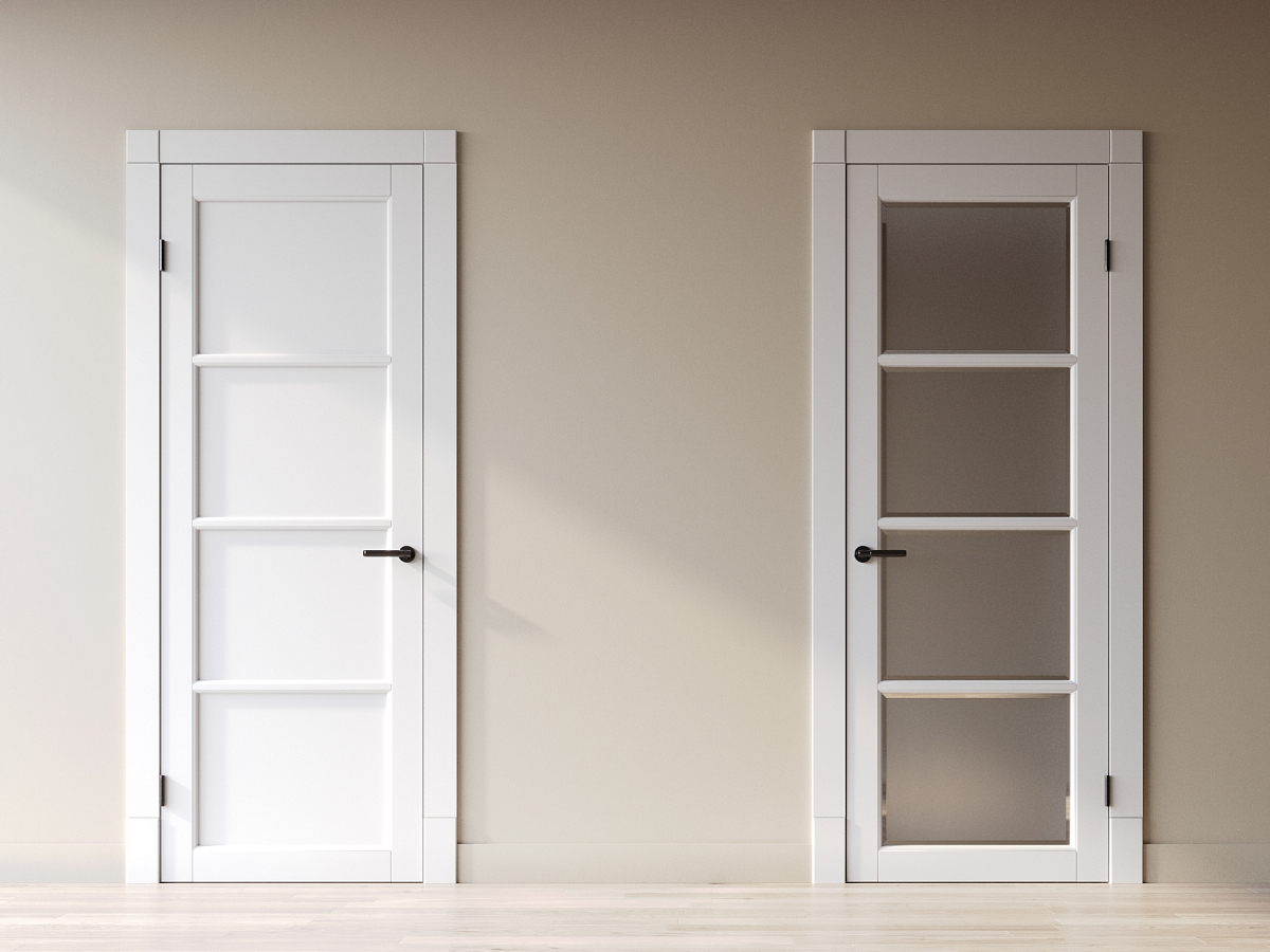 Дверь выполнена из массива бука, внешняя отделка эмаль. Стекло прозрачное, матовое или с фацетом.