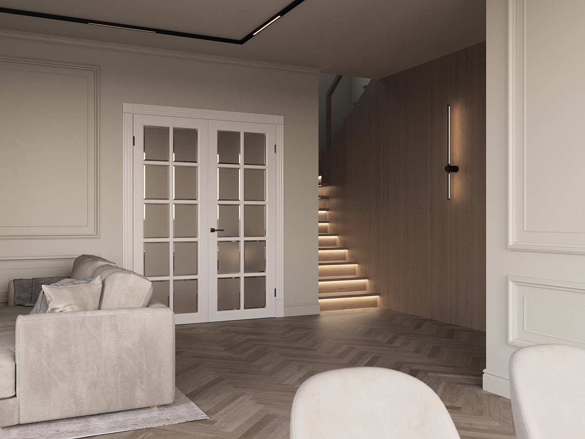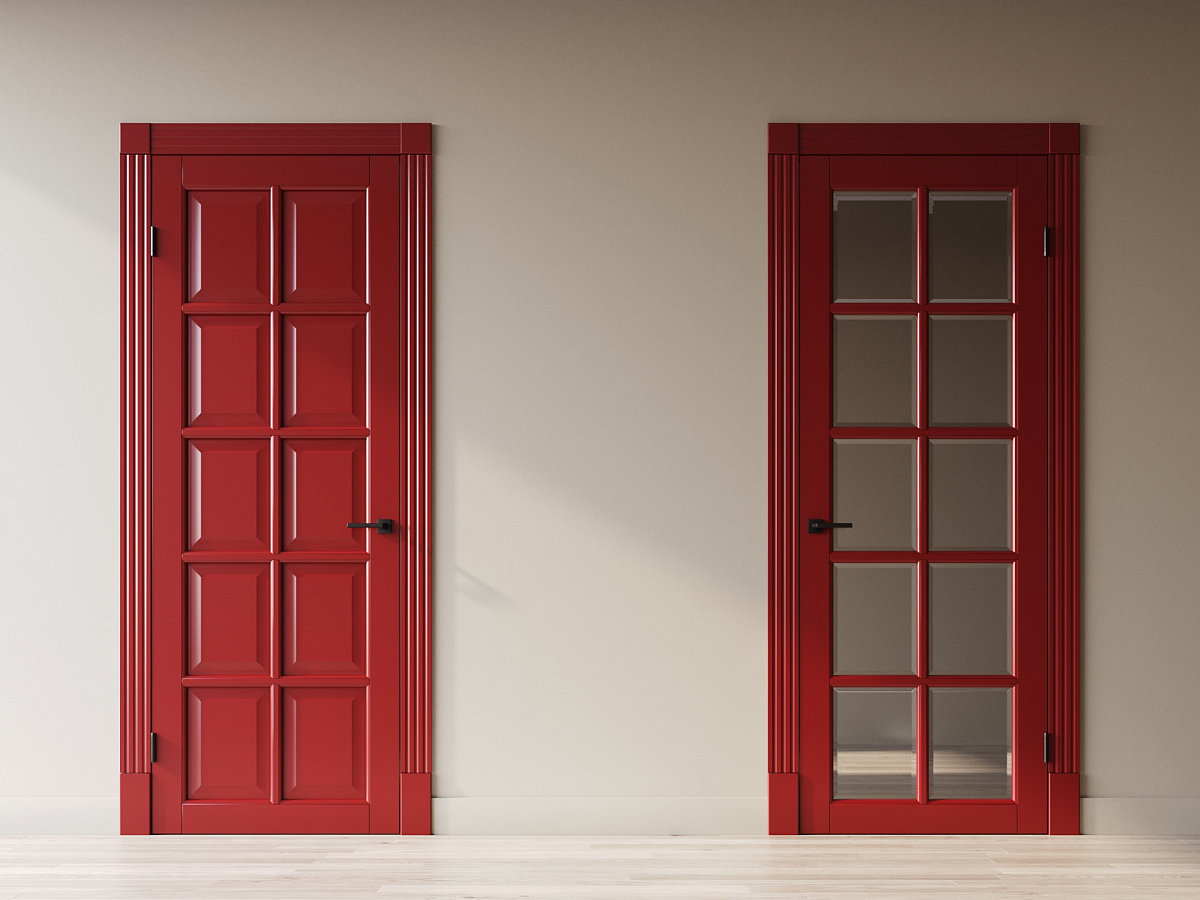 Дверь выполнена из массива бука, внешняя отделка эмаль. Стекло прозрачное, матовое или с фацетом.