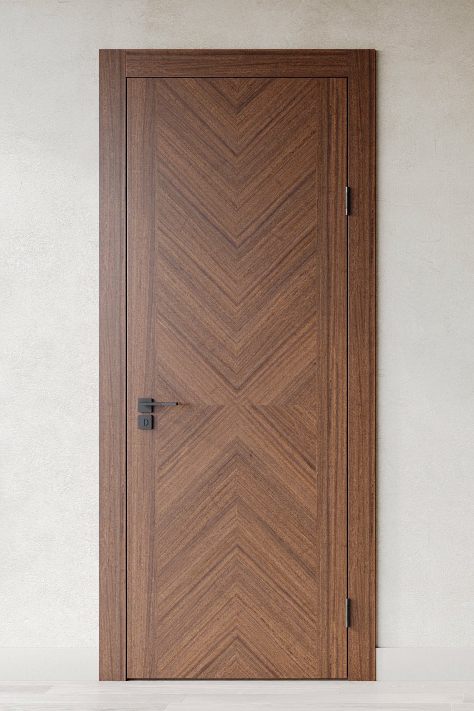 Мастера вручную создают узор двери из натурального дубового шпона. Конструкция без пустот гарантирует отличную защиту от шума.