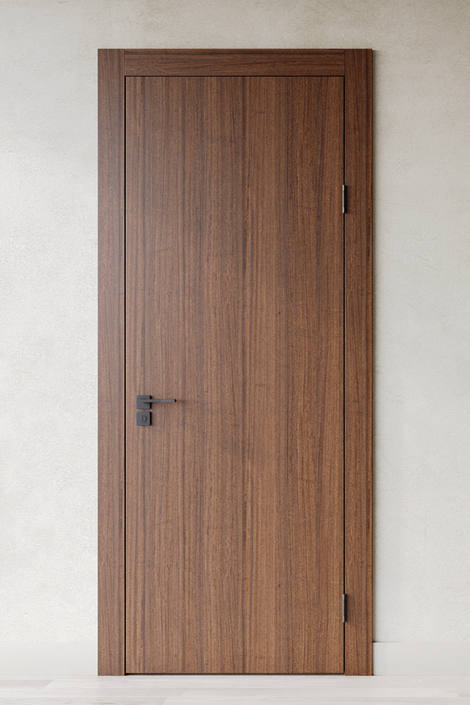 Дверь выполнена из инженерного массива дуба, облицован рубленым шпоном дуба. Смешанный по распилу шпон в вертикальной выкладке. В данной модели нет пустот и не используется древесина мягких пород, что обеспечивает повышенную звукоизоляцию.