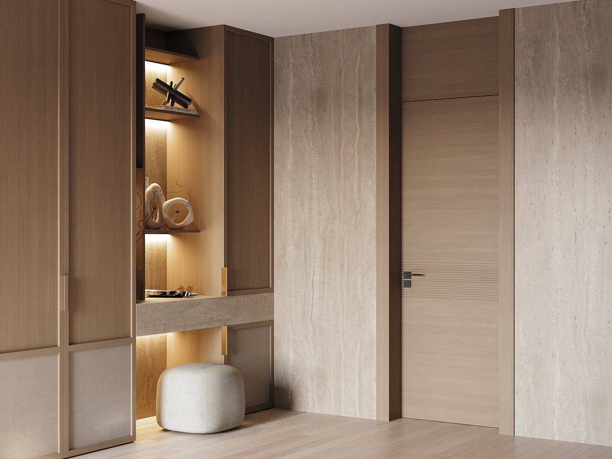 Дверь выполнена из инженерного массива дуба, облицован рубленым шпоном дуба, окрашена Sayerlack. В данной модели нет пустот и не используется древесина мягких пород, что обеспечивает повышенную звукоизоляцию.