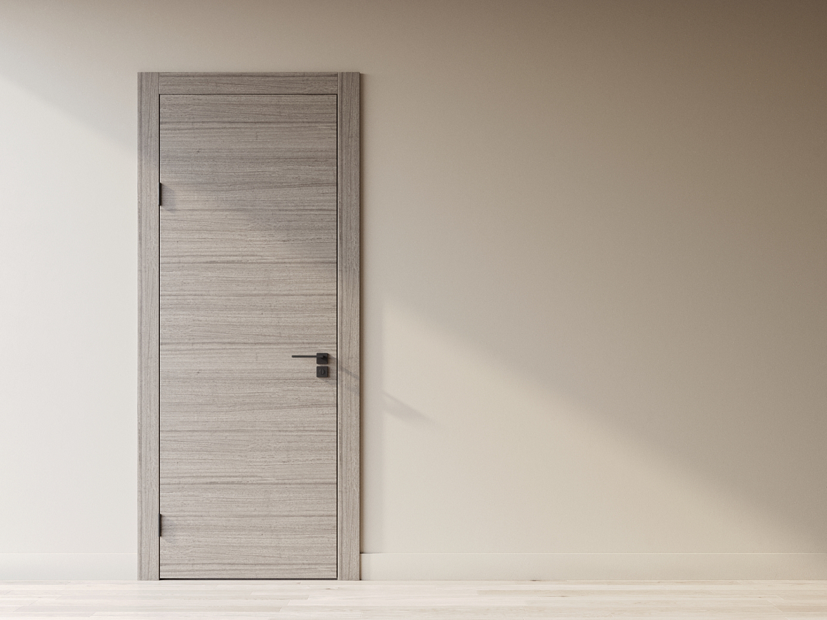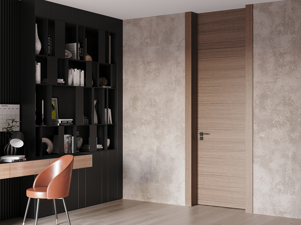 Шпон в горизонтальной выкладке, один из универсальных вариантов для любых стилистических направлений. Дверь с повышенной шумоизоляцией.