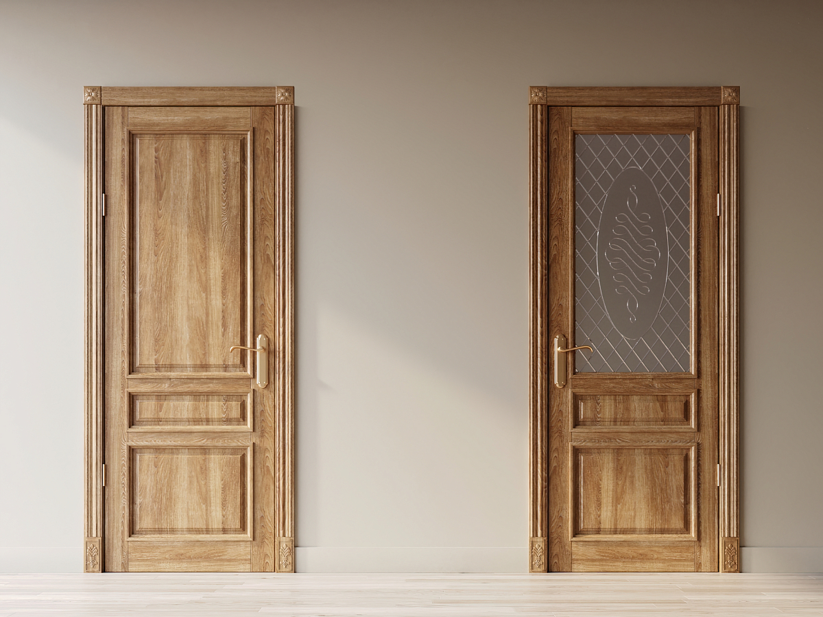 Дубовая дверь с объёмными багетными филенками. Цельноламельная конструкция покрыта премиальным лаком Sayerlack.