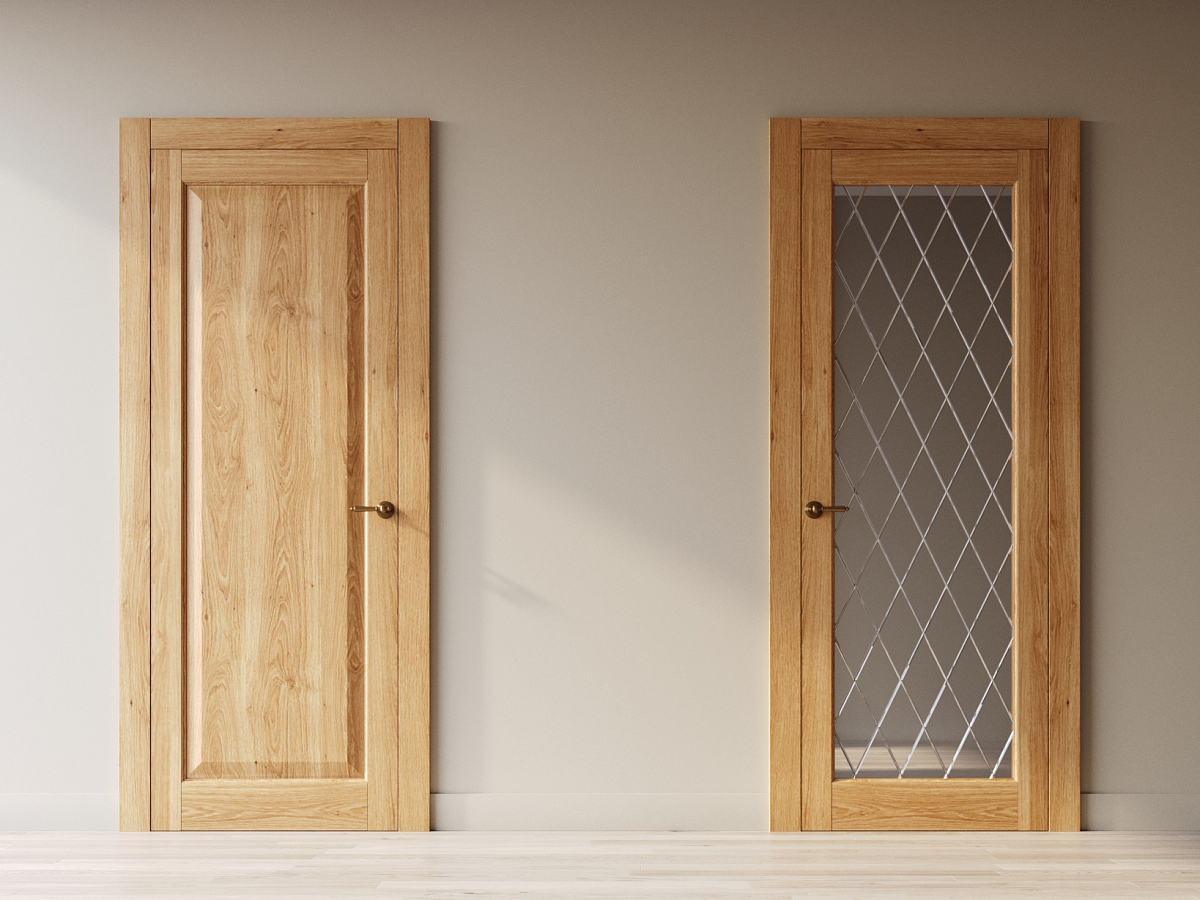 Центральная филенка может быть плоской, или объемной. Для остекления мы предлагаем ненавязчивый ромбовидный рисунок или стекло с фацетом. А еще, можно установить двустороннее зеркало, вместо стекла, это добавит интересный акцент в помещении.