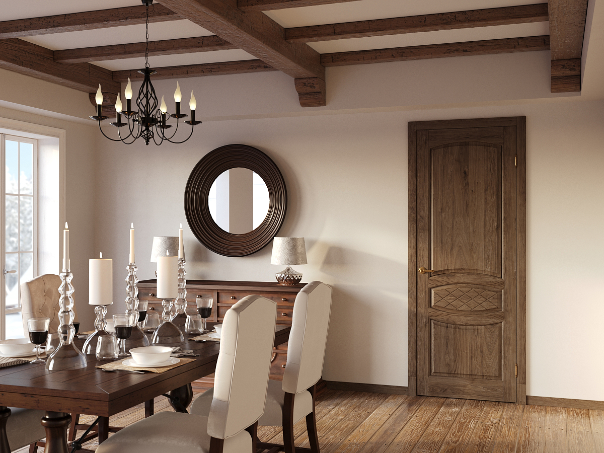 Классические формы делают модель органичной для разных стилей интерьера.От ромбовидной фрезеровки на центральной филенке можно отказаться.