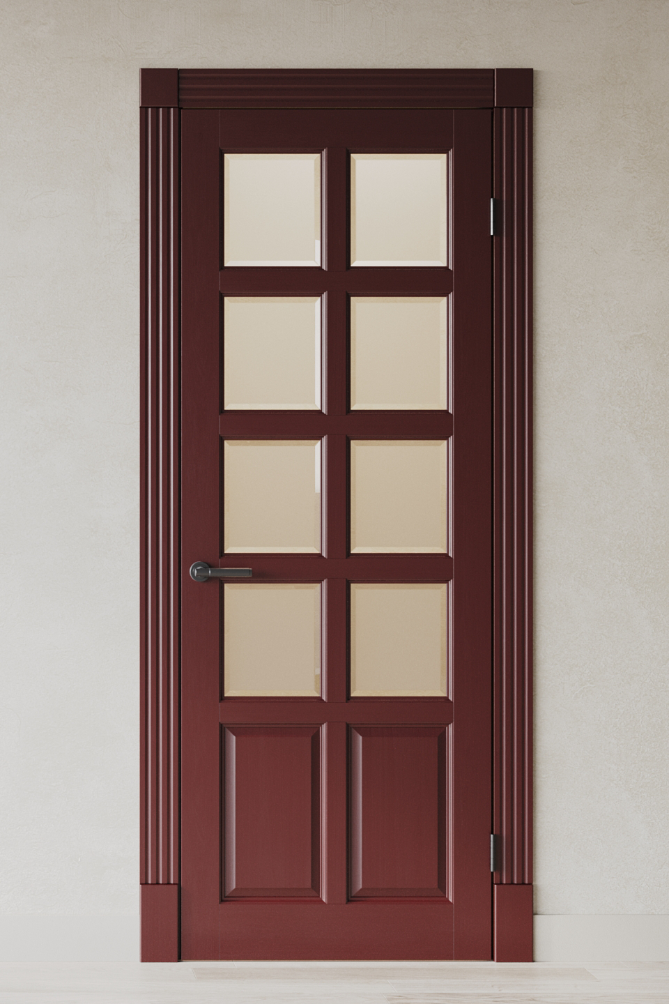 Элегантная модель с англо-французским дизайном. Возможна установка разных видов стекол: прозрачное, матовое или с фацетом по периметру.