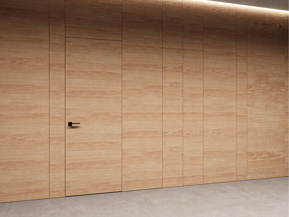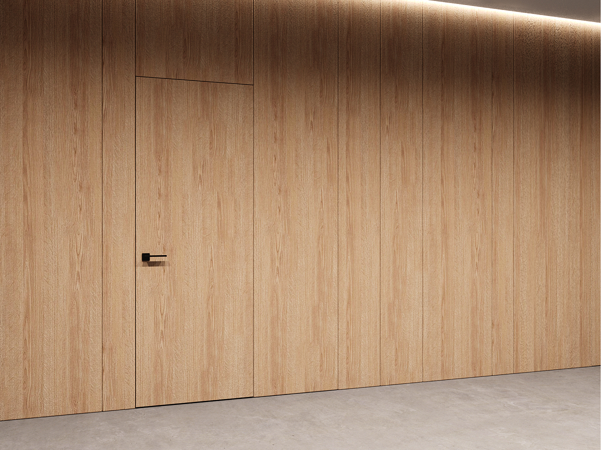 Панели и доборы из МДФ Egger покрыты шпоном дуба. На выбор - вертикальная или горизонтальная раскладка.