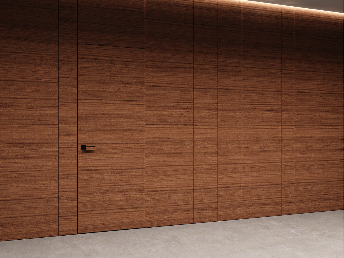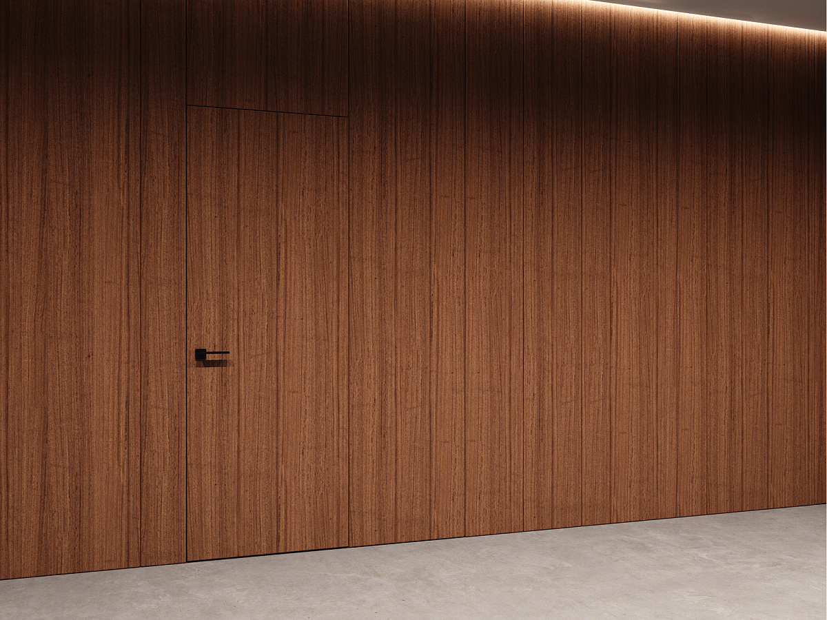 Панели и доборы выполнены из МДФ (Egger), облицованы натуральным шпон дуба. Раскладка на панелях может быть вертикальная или горизонтальная.