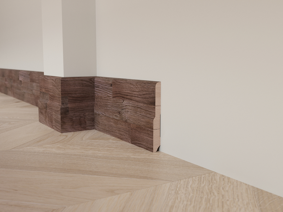 Ступенчатый дубовый плинтус изготовлен из инженерного массива.